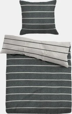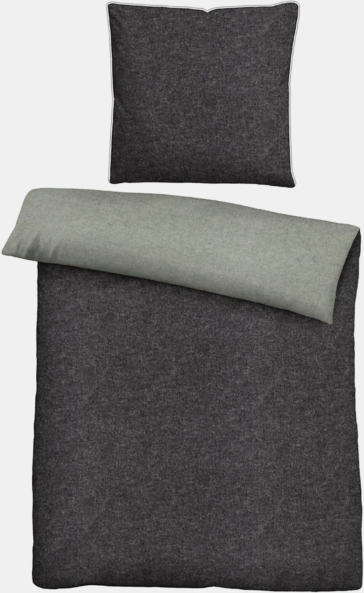 Wende-Bettwäsche von BIBERNA. In moderner Melange-Optik, aus kuschelweichem Biber-Flanell, hautsympathisch, atmungsaktiv und herrlich wärmend. Pflegeleicht, bügelfrei und einlaufsicher dank hochwertiger Sanfor-Veredlung. Kissenbezüge mit farblich abgesetzter Paspel. Made in Germany. Alle Teile mit Reißverschluss.
