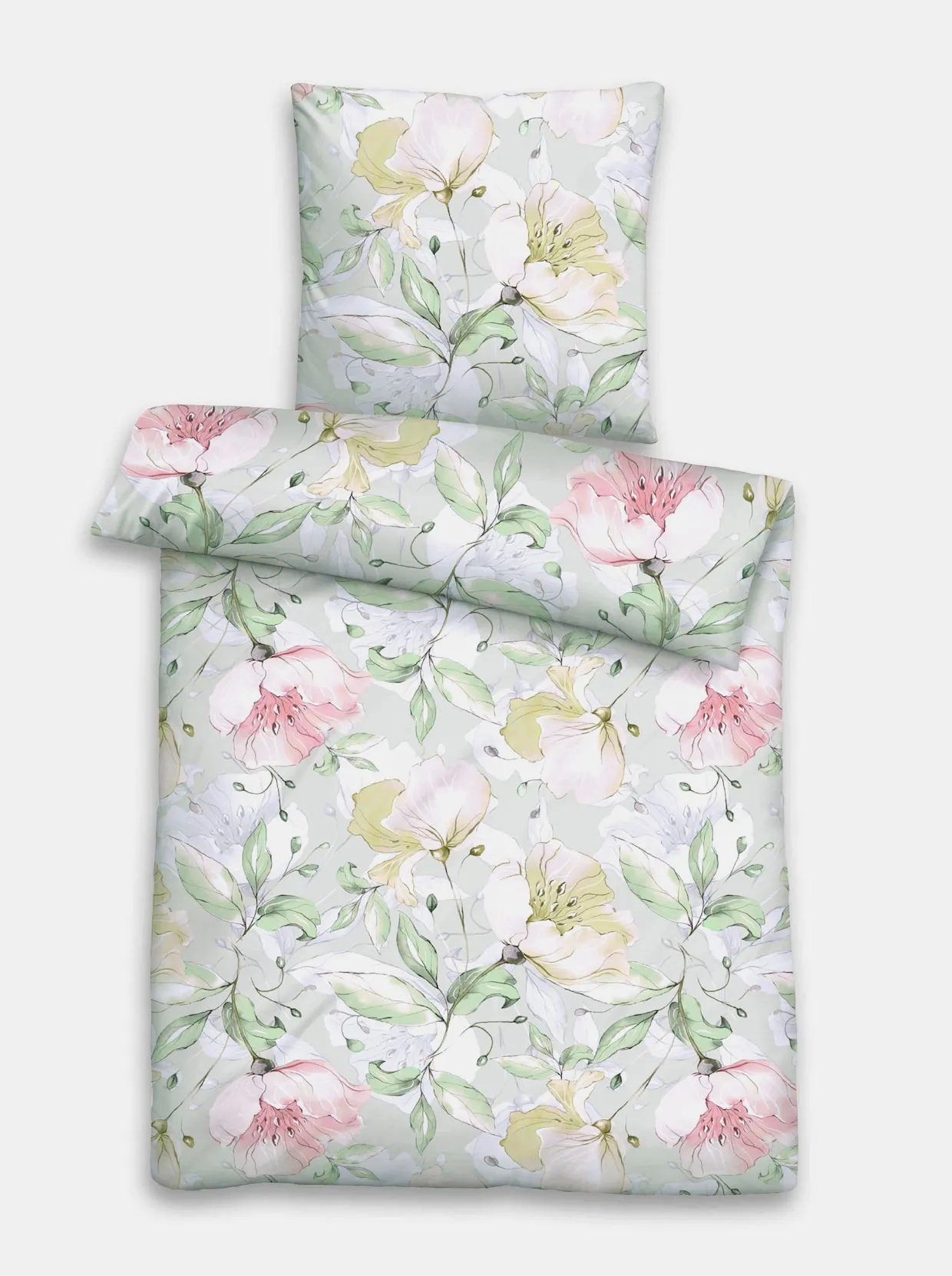 Nicht nur Blumenliebhaber erleben in dieser verspielten Bettwäsche von Biberna erholsame Nächte. Mit Reißverschluss. Auch Einzelkissenbezüge erhältlich.