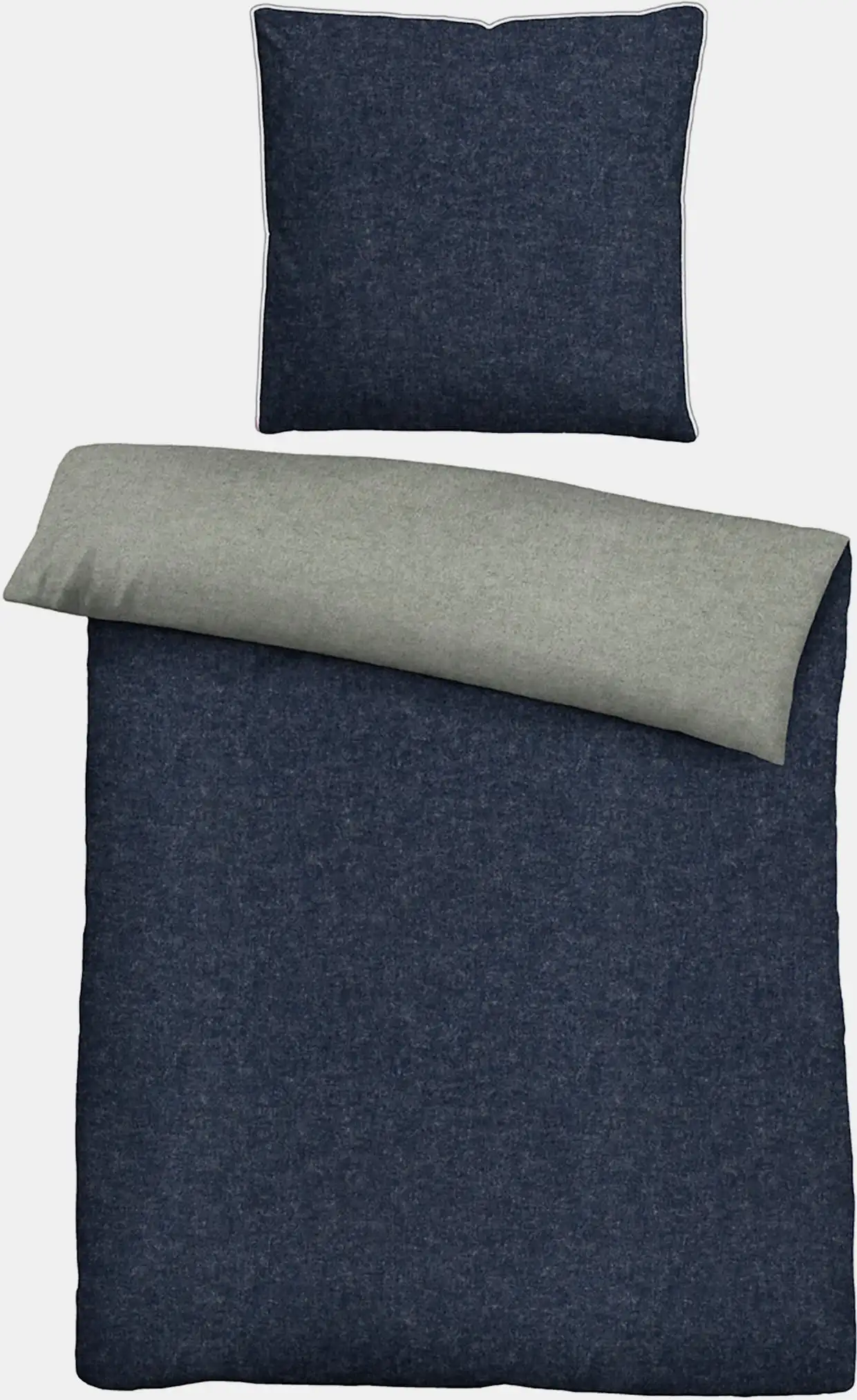 Wende-Bettwäsche von BIBERNA. In moderner Melange-Optik, aus kuschelweichem Biber-Flanell, hautsympathisch, atmungsaktiv und herrlich wärmend. Pflegeleicht, bügelfrei und einlaufsicher dank hochwertiger Sanfor-Veredlung. Kissenbezüge mit farblich abgesetzter Paspel. Made in Germany. Alle Teile mit Reißverschluss.