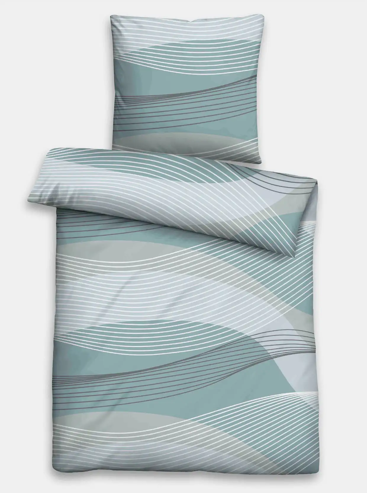 Das zarte Wellendessin in dezenter Farbgebung passt sicher auch in Ihr Schlafzimmer: Bettwäsche in beliebten, bügelfreien Qualitäten. Mit praktischem Reißverschluss. Mit jeder Garnitur erhalten Sie einen Kissenbezug 40×80 cm!