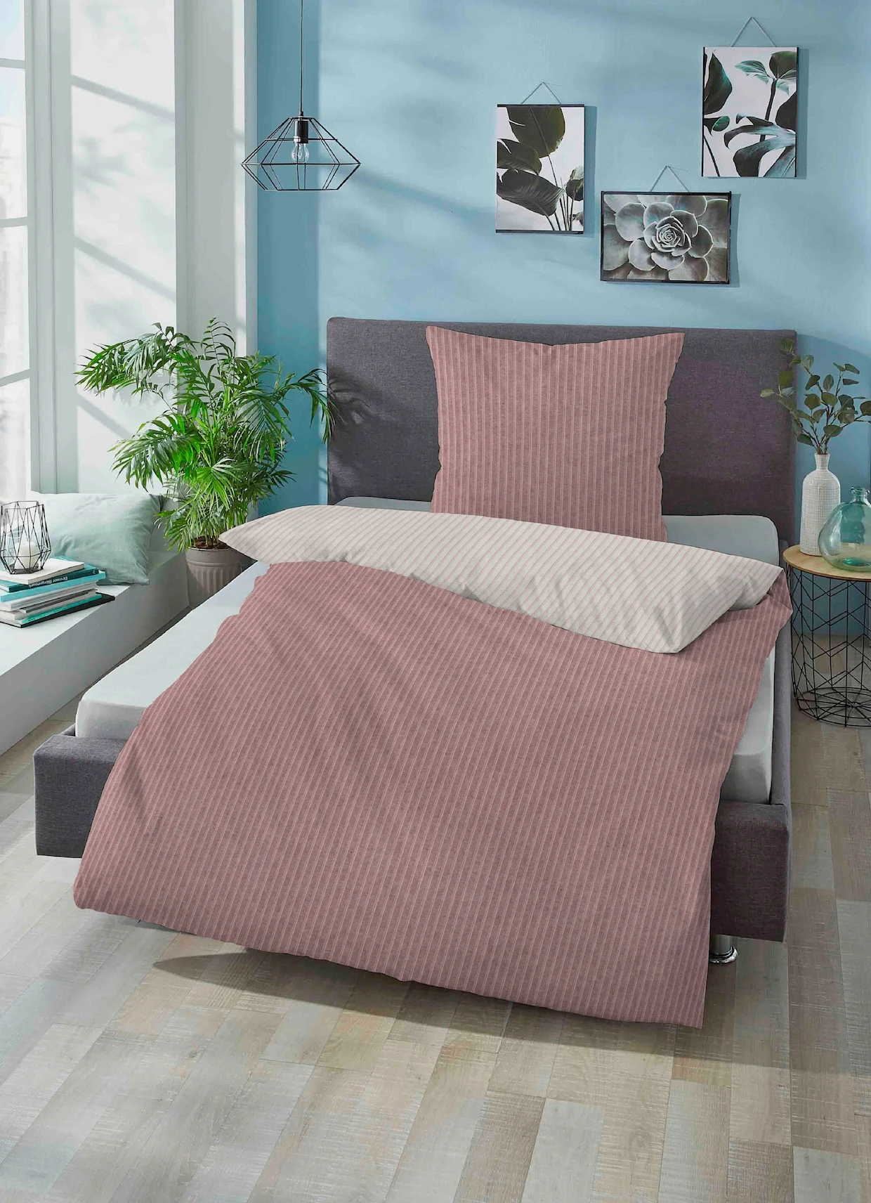 Wende-Bettwäsche von BIBERNA. In moderner Melange-Optik mit edlen Webstreifen. Aus kuschelweichem Flanell, hautsympathisch, atmungsaktiv und herrlich wärmend. Pflegeleicht, bügelfrei und einlaufsicher dank hochwertiger Sanfor-Veredlung. Made in Germany. Alle Teile mit Reißverschluss.