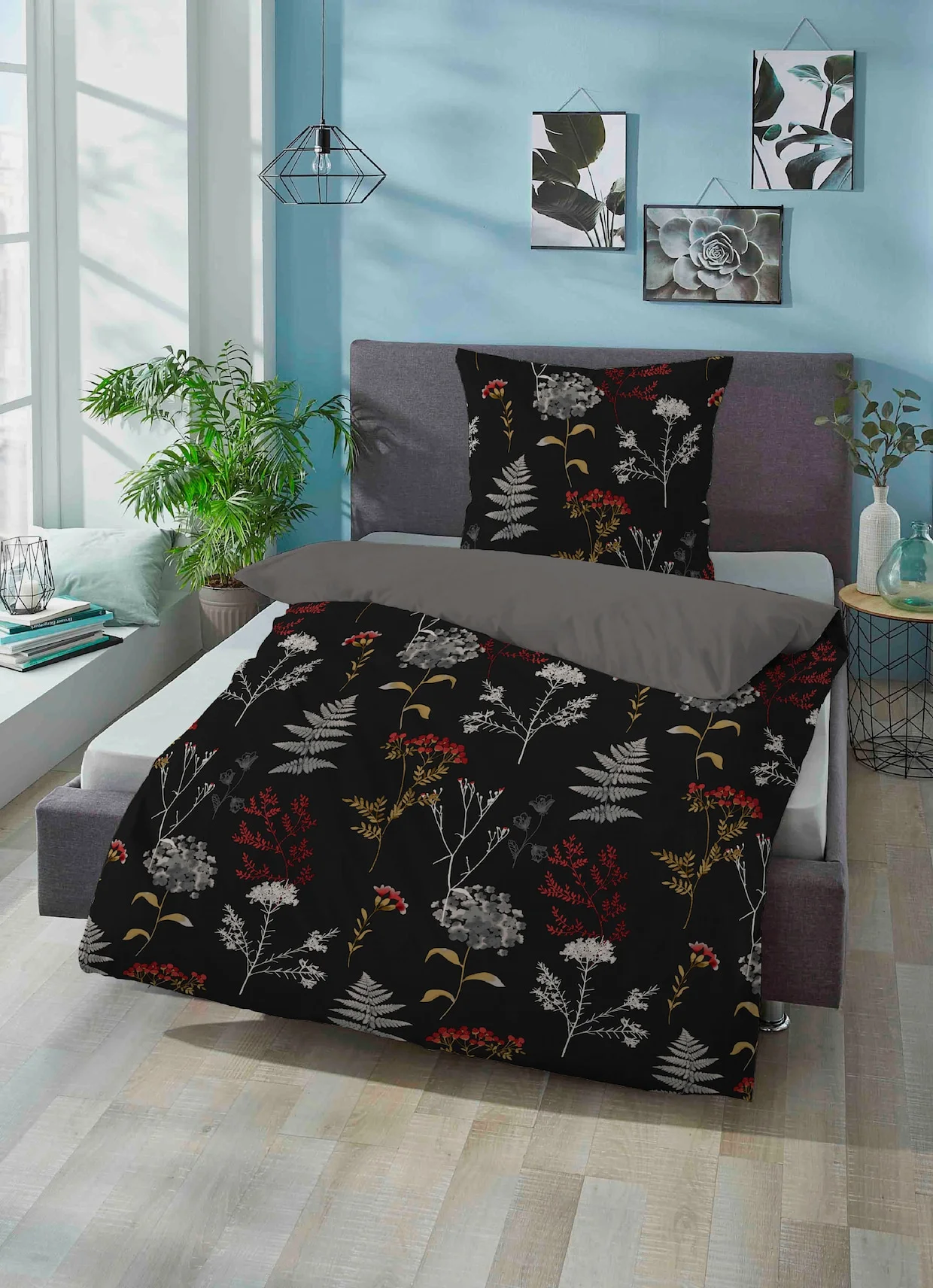 Wende-Bettwäsche von BIBERNA. Besticht mit modernem Floral-Dessin und hochwertiger, pflegeleichter Qualität. Aus edlem Mako-Satin, mit feinem Glanz und weichem Griff; hautsympathisch, atmungsaktiv und bügelleicht. Made in Europe. Alle Teile mit Reißverschluss.