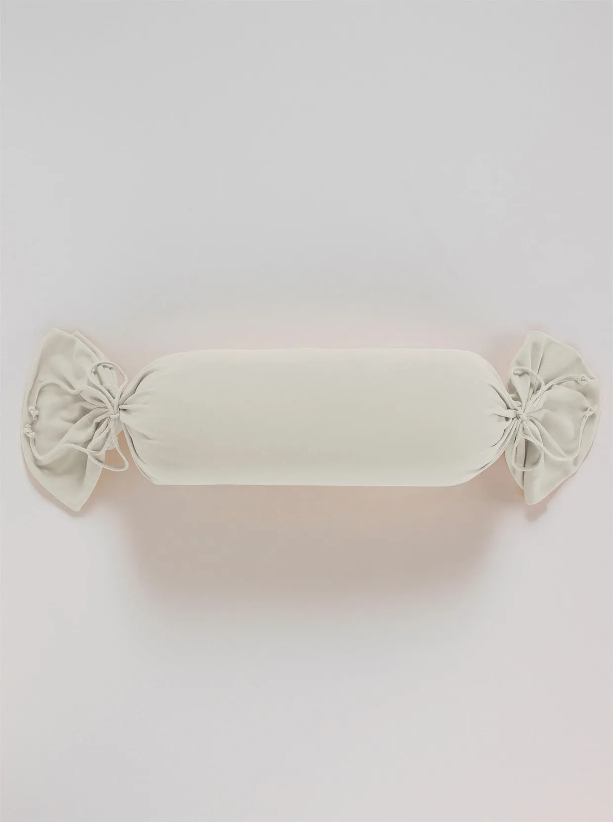 Kissenbezüge mit Knopfverschluss. Nackenrollenbezüge mit Bindebändern.