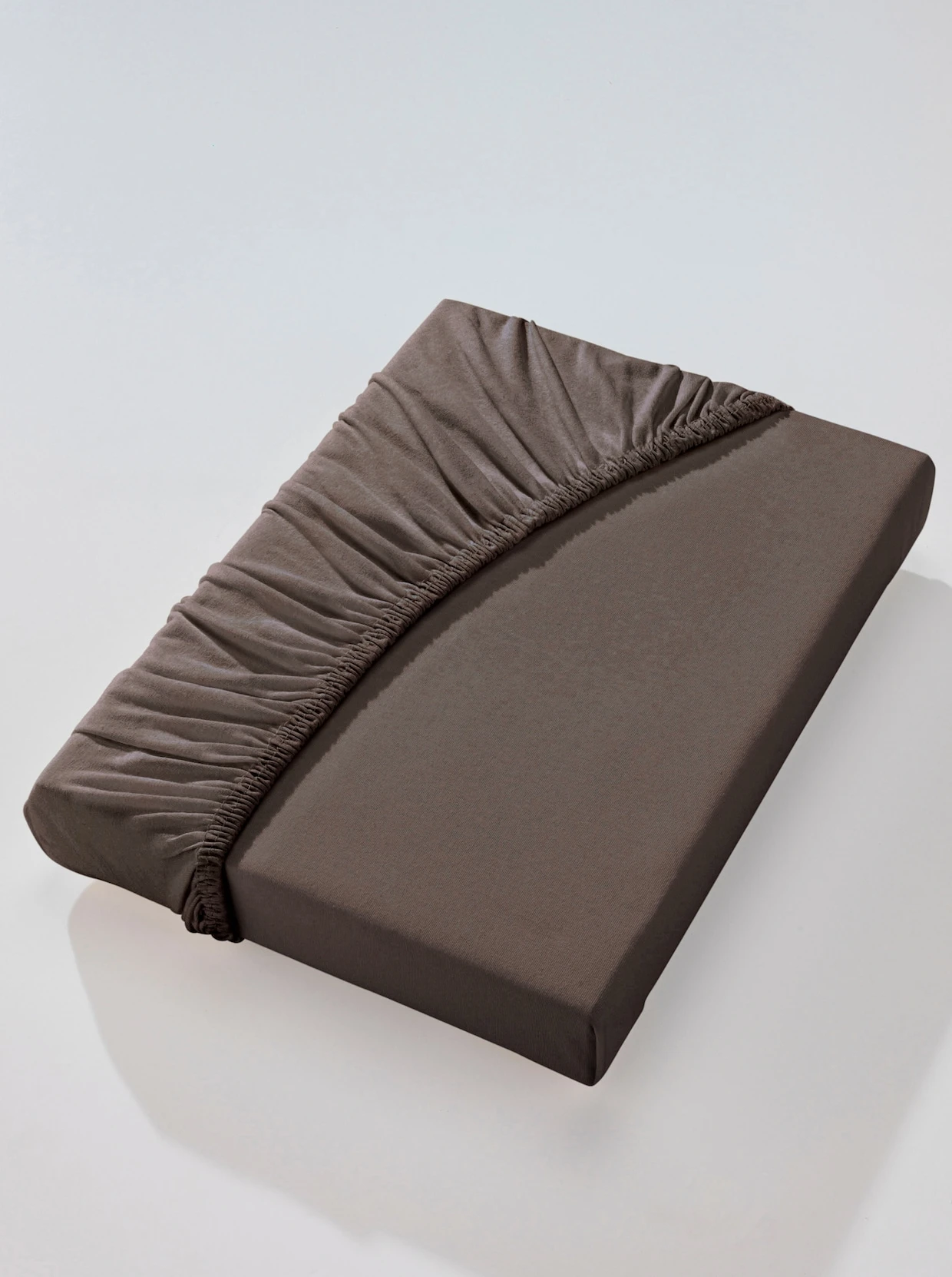 Spannbetttuch in Feinjersey-Qualität. Fein gestrickte, hautfreundliche, formstabile und pflegeleichte Maschenware. Ideale Passform durch Rundum-Gummizug. Geeignet für eine Matratzenhöhe von bis zu 20 cm. Fusselfrei und strapazierfähig.