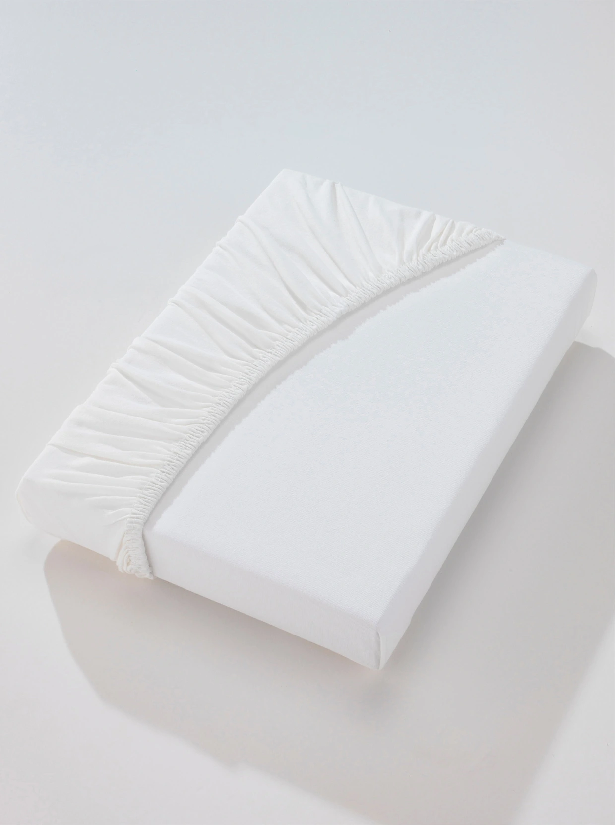 Spannbetttuch in Feinjersey-Qualität. Fein gestrickte, hautfreundliche, formstabile und pflegeleichte Maschenware. Ideale Passform durch Rundum-Gummizug. Geeignet für eine Matratzenhöhe von bis zu 20 cm. Fusselfrei und strapazierfähig.