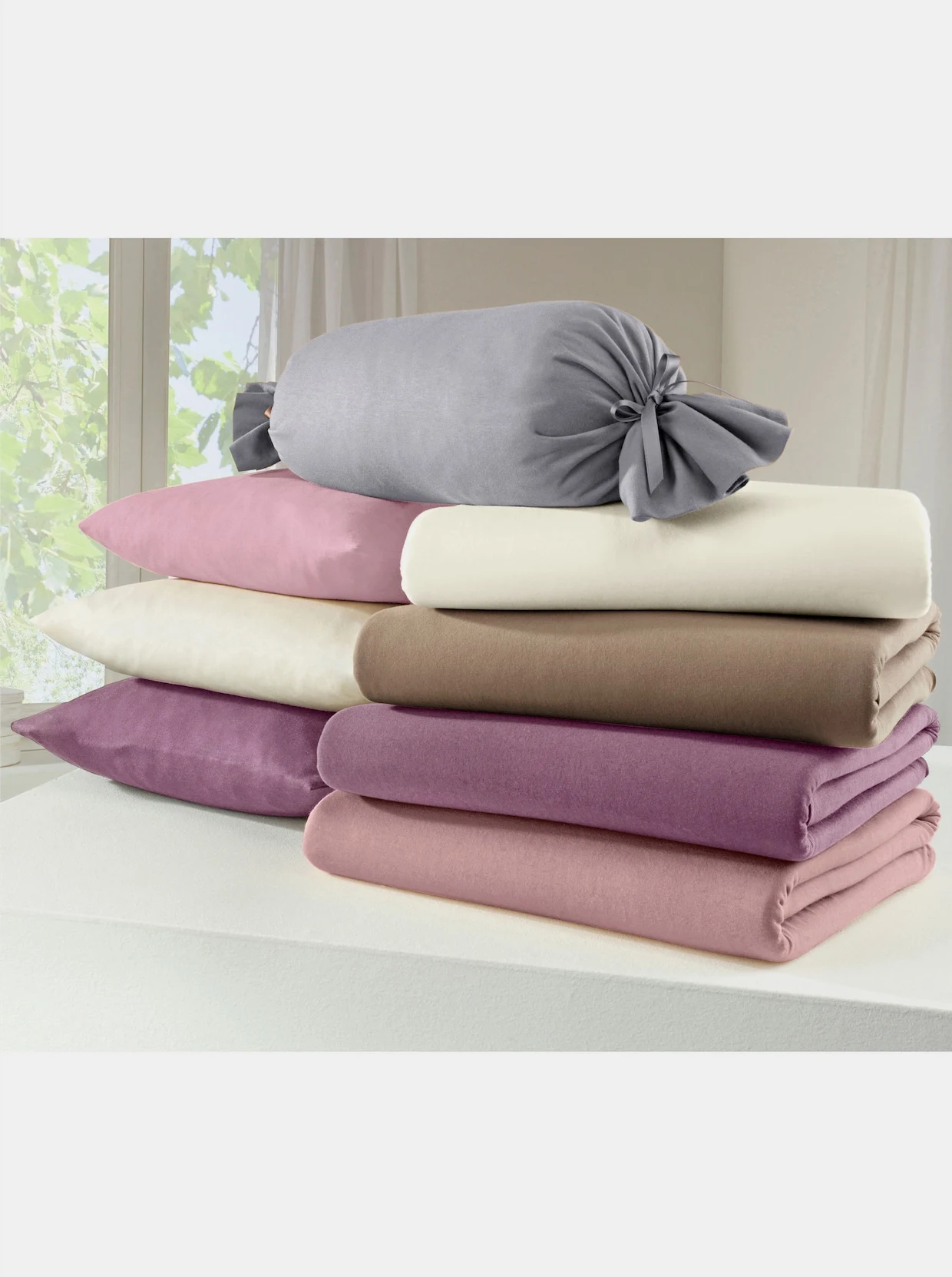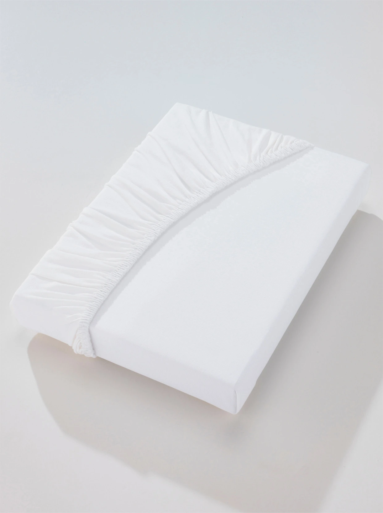 Spannbetttuch. Bügelfreier, hautsympathischer Mako-Feinjersey: Diese elastische Wirkware ist glatt und weich und überzeugt durch ihr feines, ebenmäßiges Maschenbild. Rundum-Gummizug. Langstapelige Mako-Qualität. Geeignet für eine Matratzenhöhe von bis zu 25 cm.