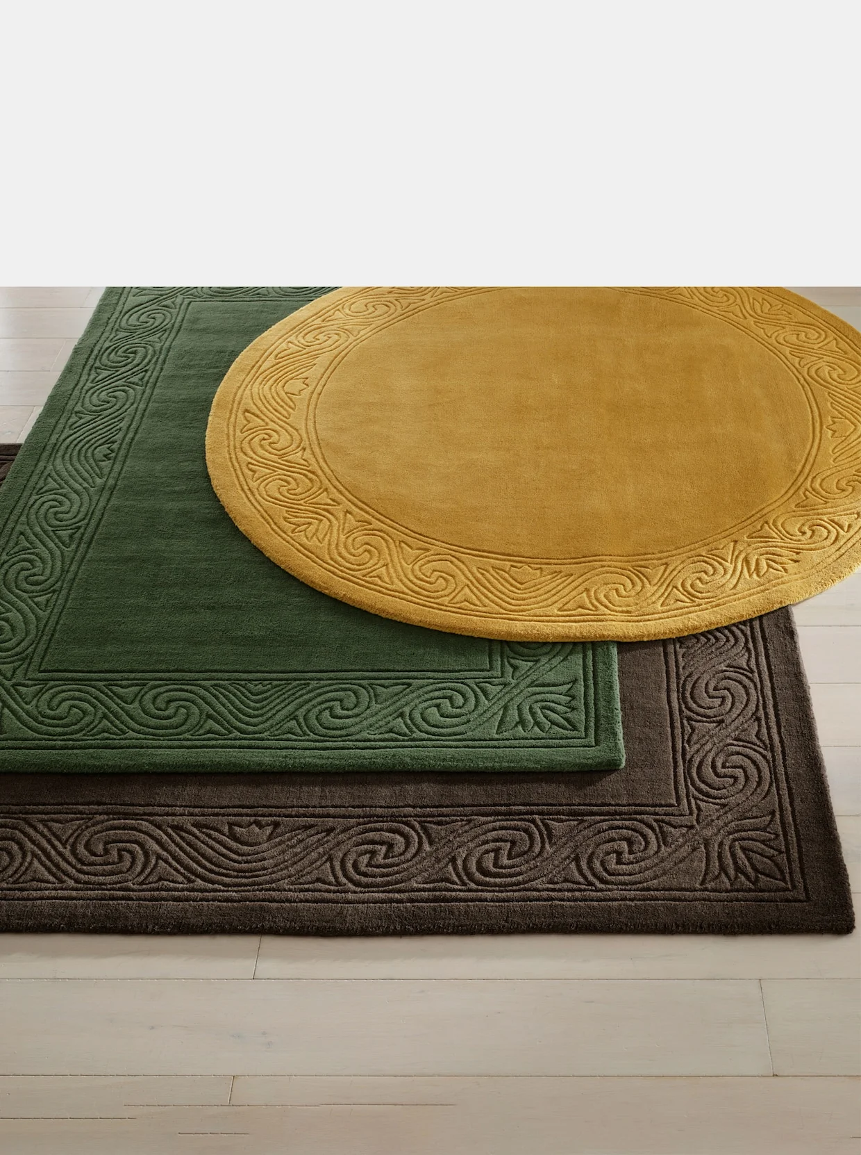 Hochflorteppich Mit aufwendiger Relief-Bordüre, von Hand geschnitten. Handgewebt.
