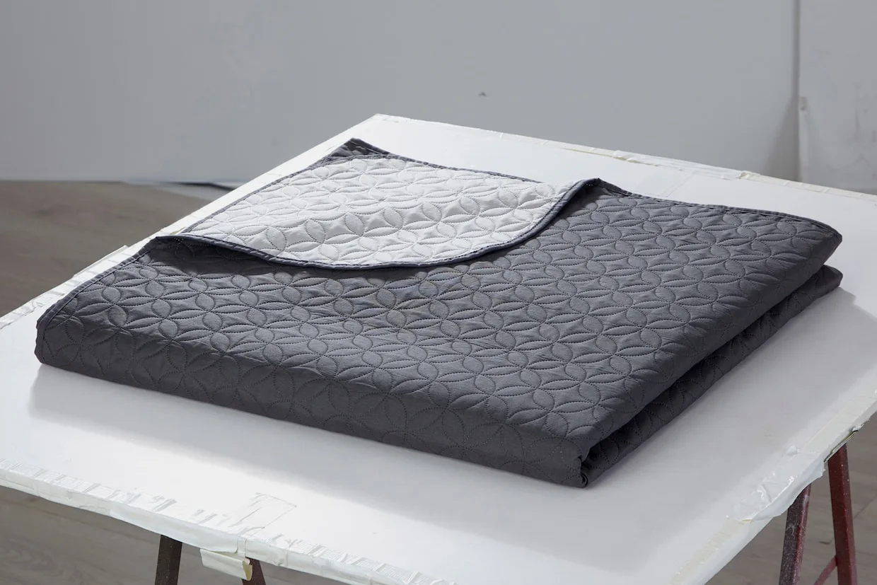 Tagesdecke Wendemodell mit effektvollem Prägedruck. Mit Bandeinfassung. Maßinfos im Internet.