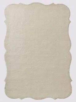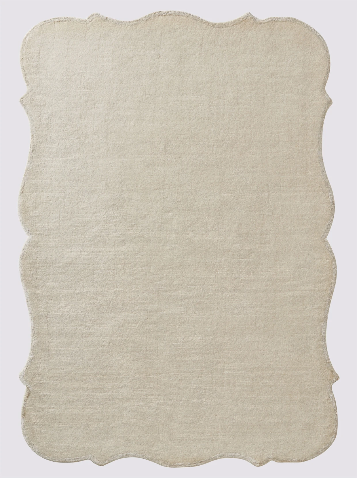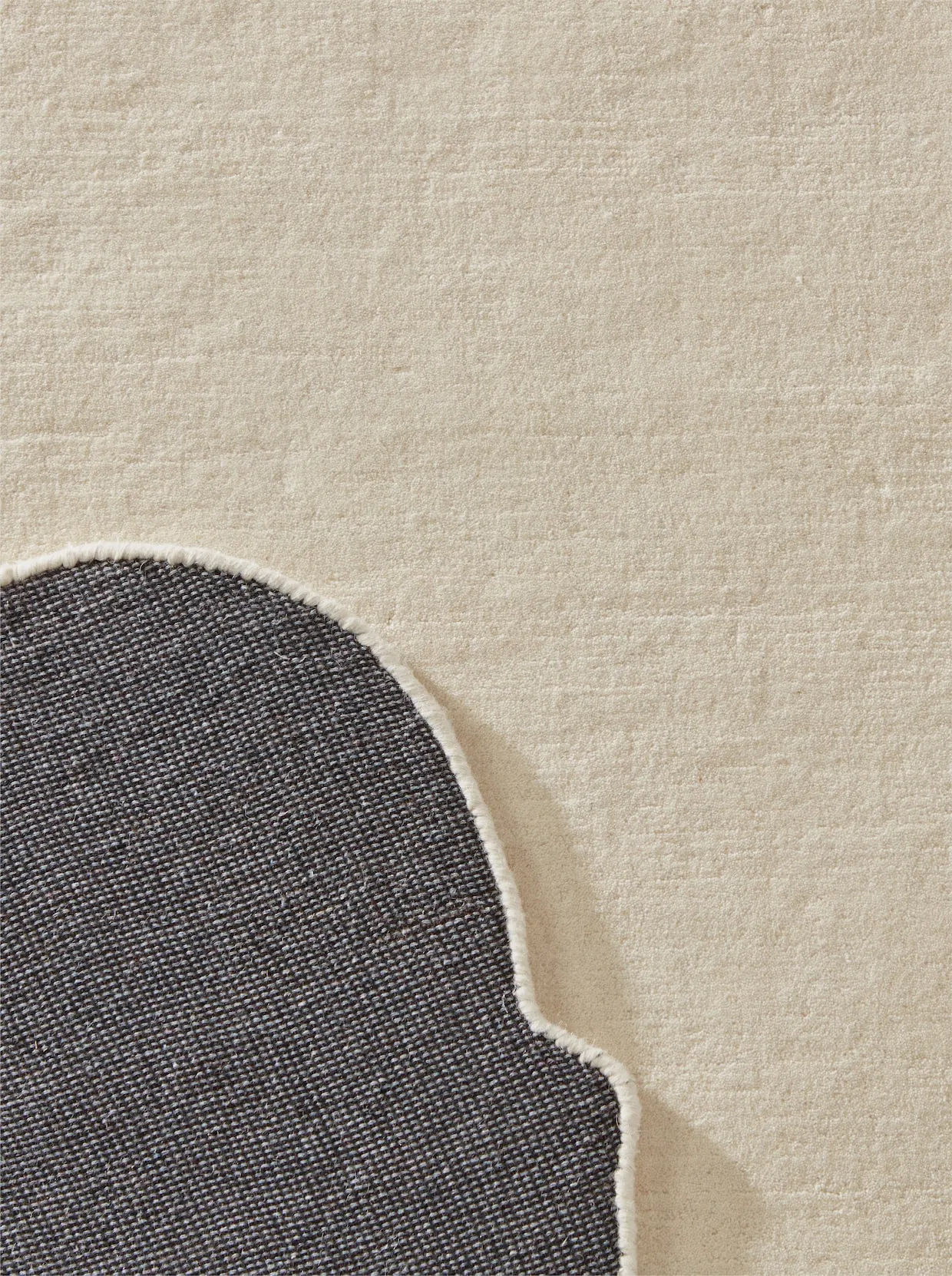 Teppich Kurzflorteppich in außergewöhnlicher Form, mit abgesetzter Umrandung in Viskose Qualität. Handgetuftet und rundum gekettelt. Äußerst strapazierfähig. Baumwollrücken. Höhe ca. 12 mm.