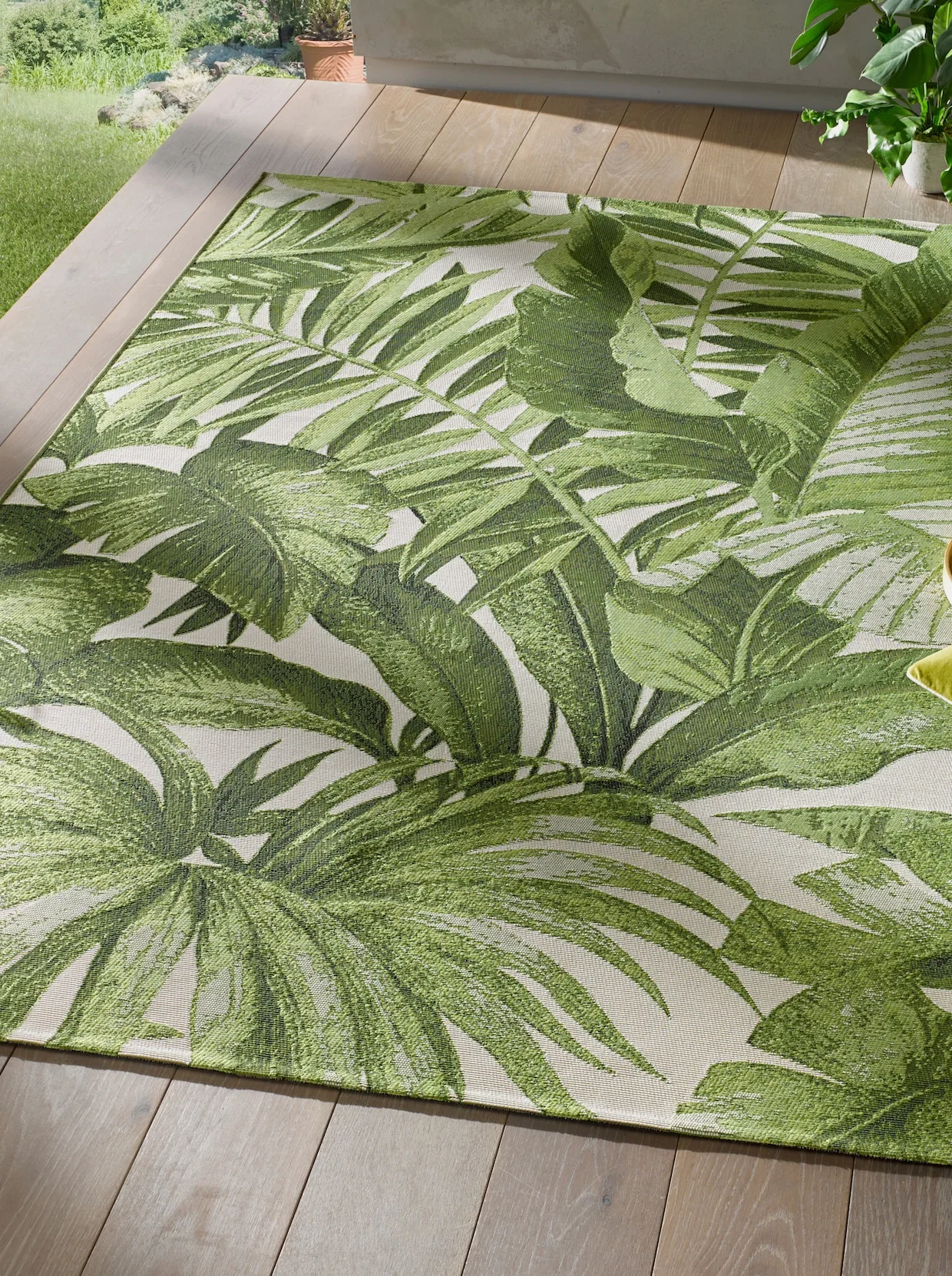 Teppich Für Drinnen und Draußen geeignet. Schmutzabweisend und pflegeleicht. Äußerst robustes, UV-beständiges Flachgewebe. Maschinell gewebt, mit gekettelter Einfassung gekettelt. Für Fußbodenheizung geeignet.
