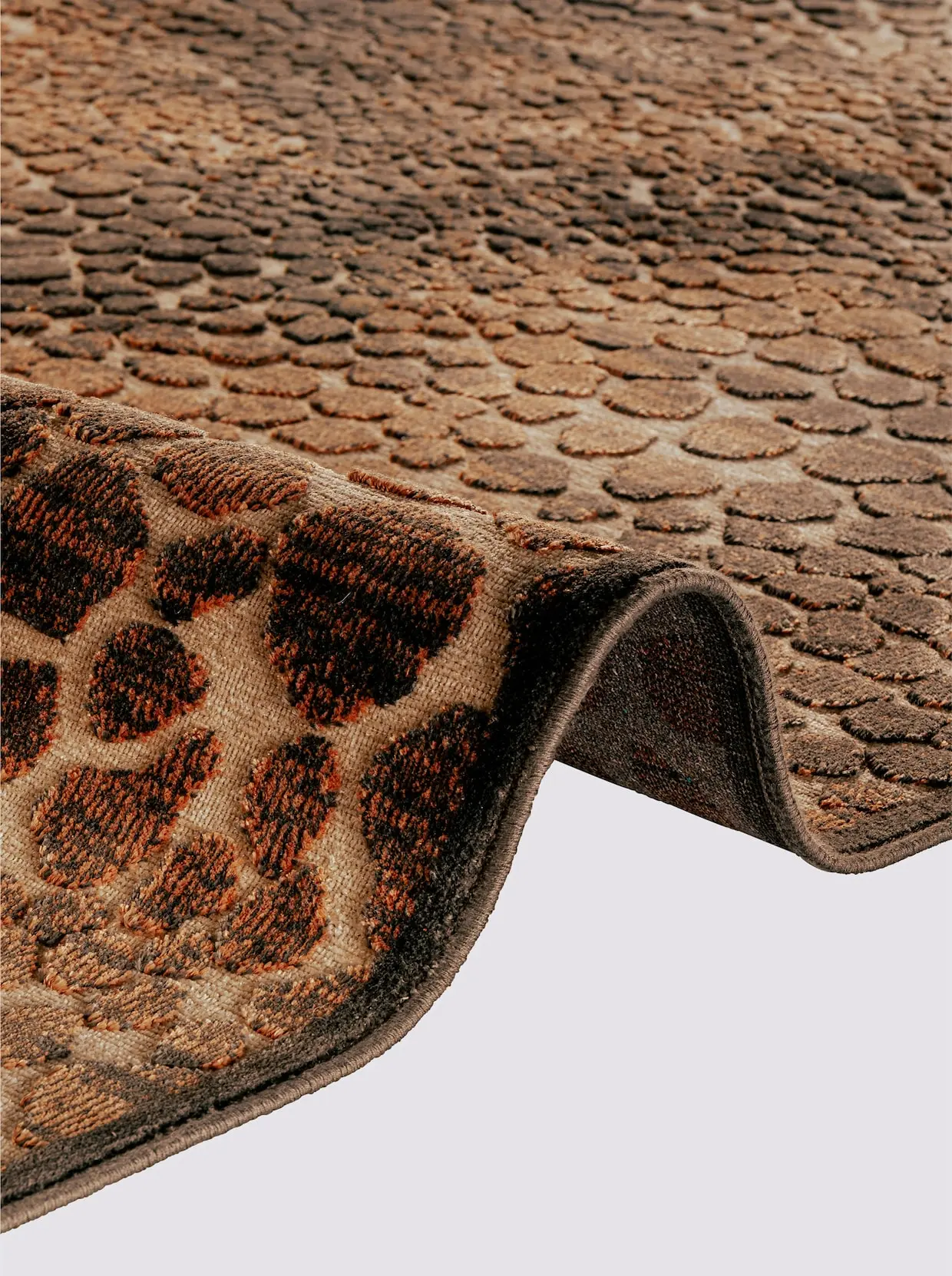 Teppich Kurzflorteppich mit 3-D-Effekt. Maschinell gewebt. Edler Glanz durch Viskose-Garn. Gekettelt. Höhe ca. 5 mm.