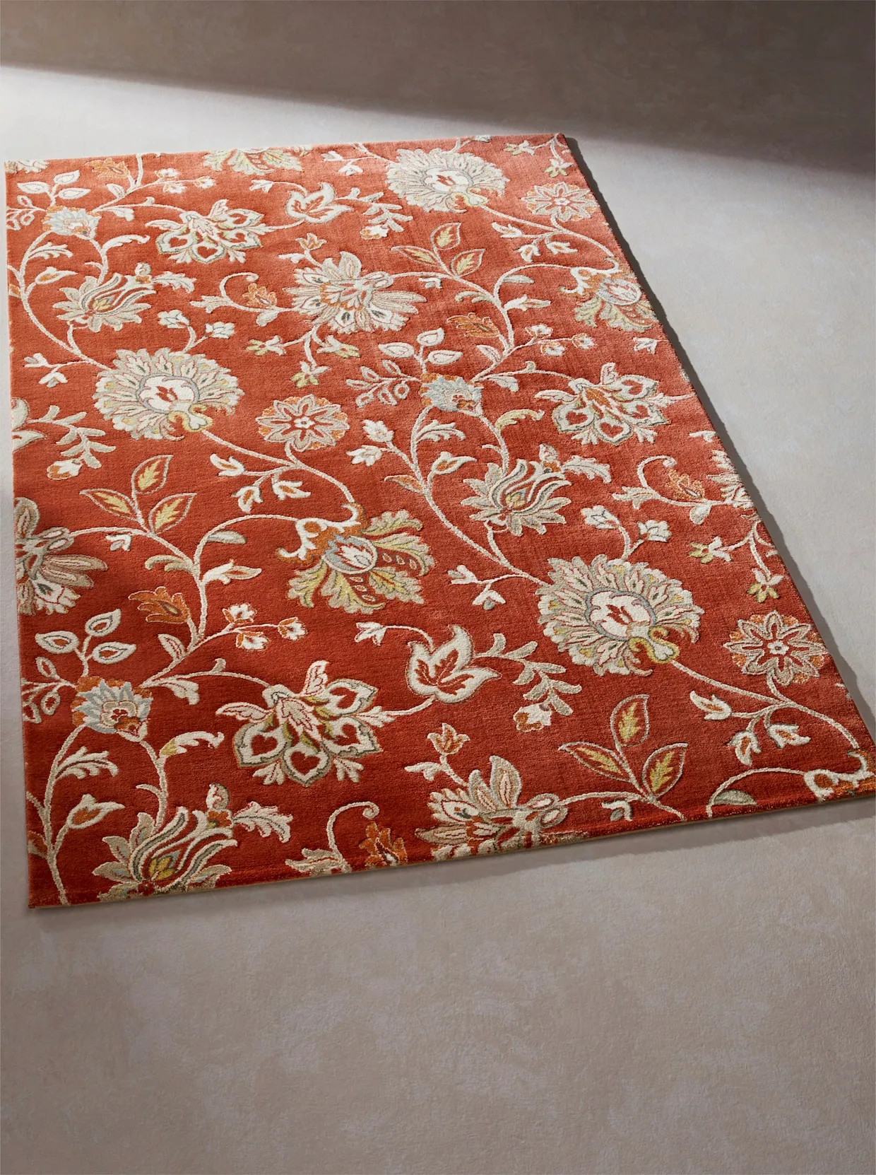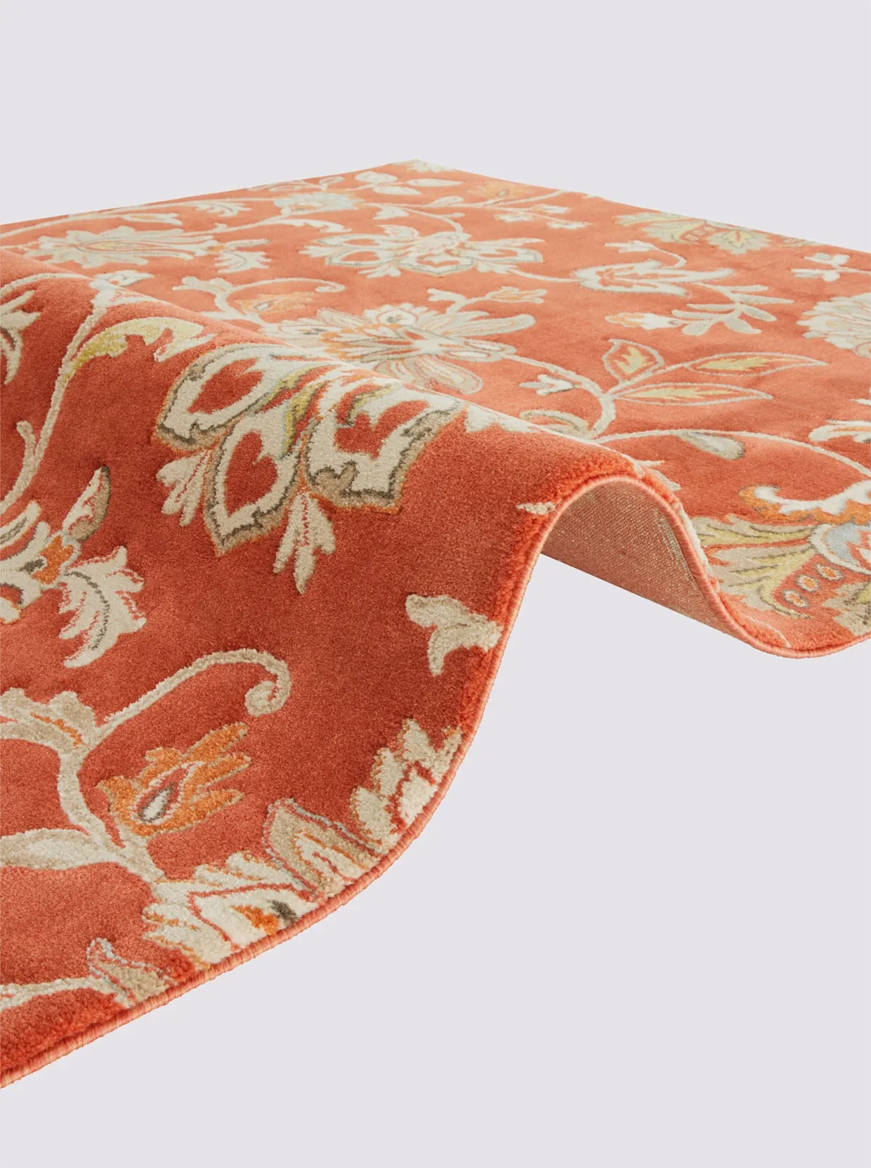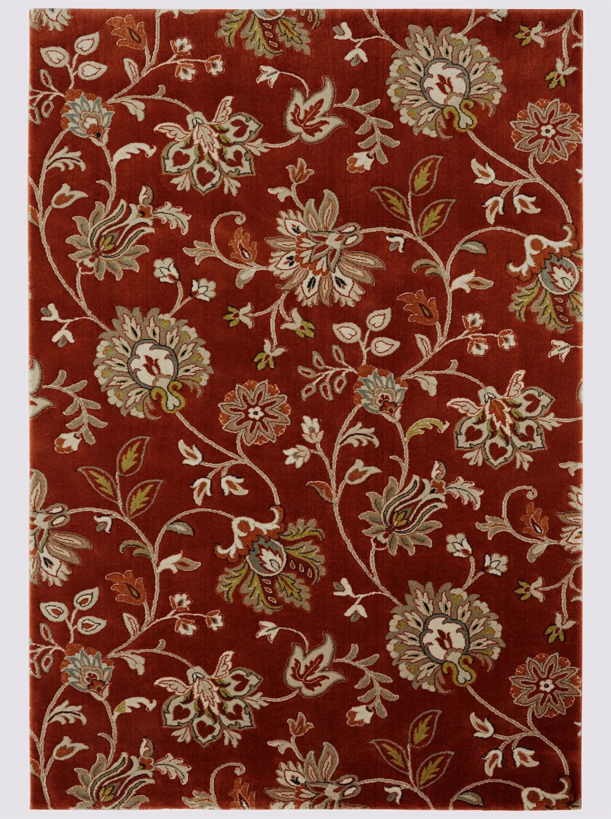Teppich Made in Europe. Aufwendiges Blüten-, Rankmuster-Motiv, mit liebevollen Details. Maschinell gewebt. Längsseiten gekettelt. Pflegeleicht. Wasserabweisend und antistatisch.