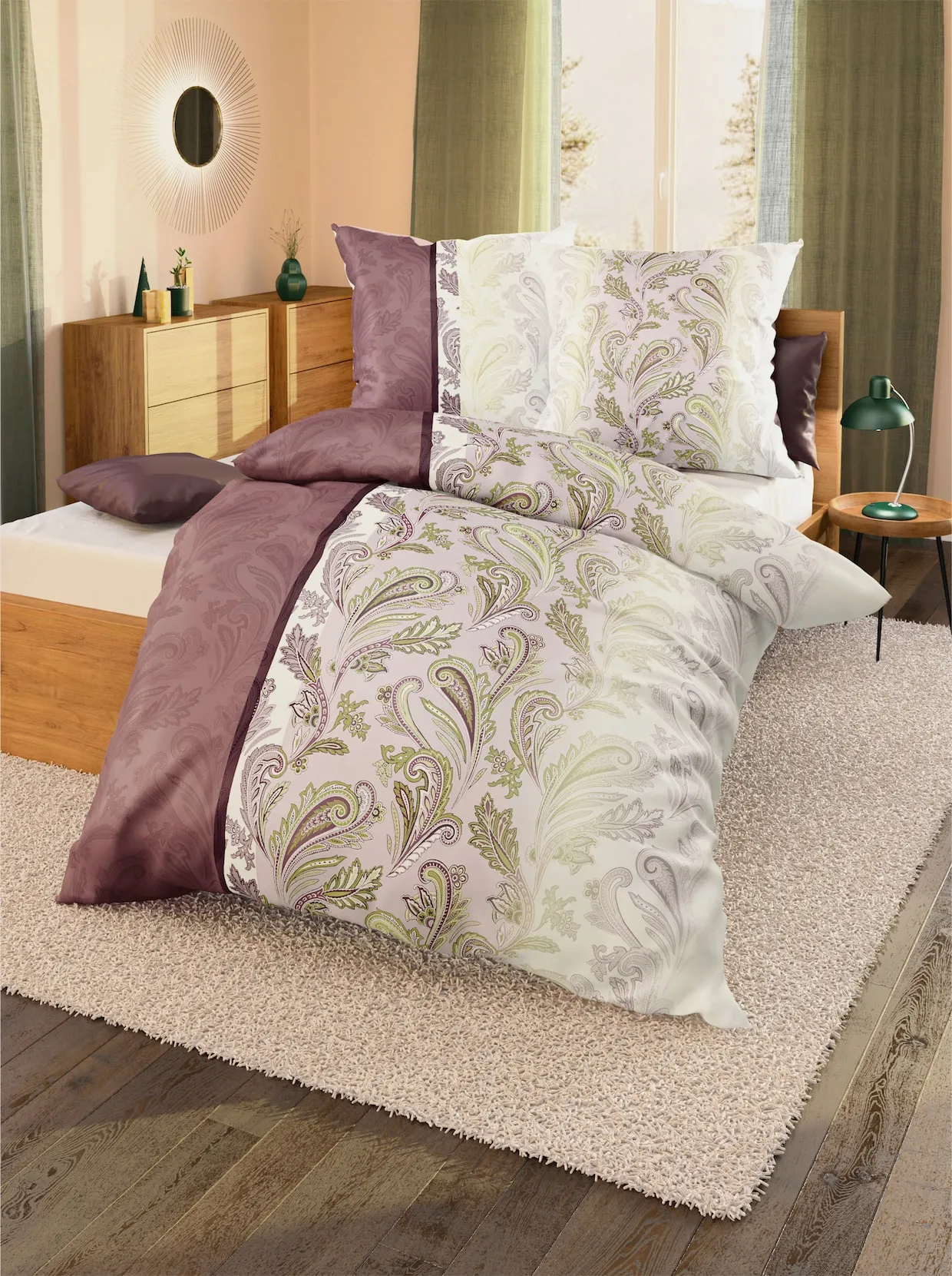 Klassisches Paisleydessin neu interpretiert: reich verzierte Bettwäsche von Kaeppel. Mit schön gestaltetem Wendekopfkissen. Mit Reißverschluss.