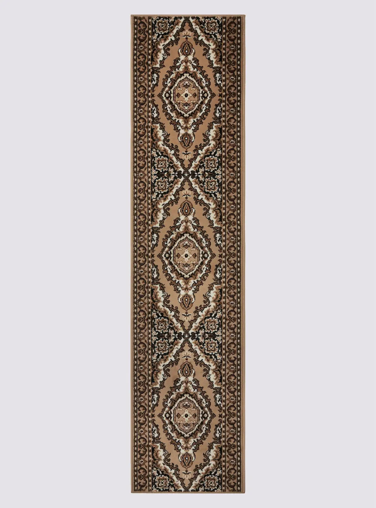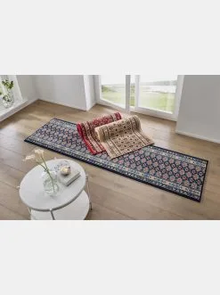 Ein echter Klassiker im aufwändigen Ornamentdessin: Kurzflor-Teppich-Programm in unempfindlicher Qualität. Maschinell gefertigt, Abschlüsse ringsum gekettelt. Höhe ca. 8 mm.