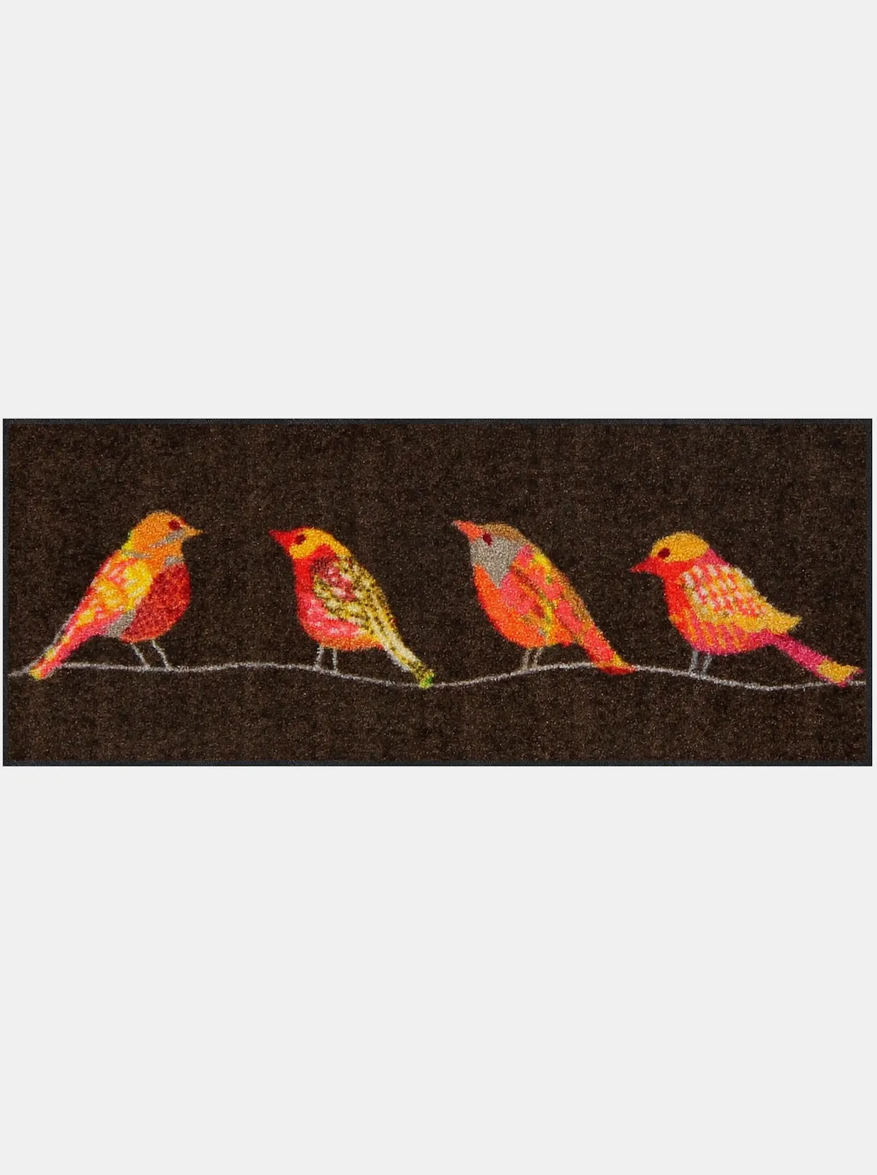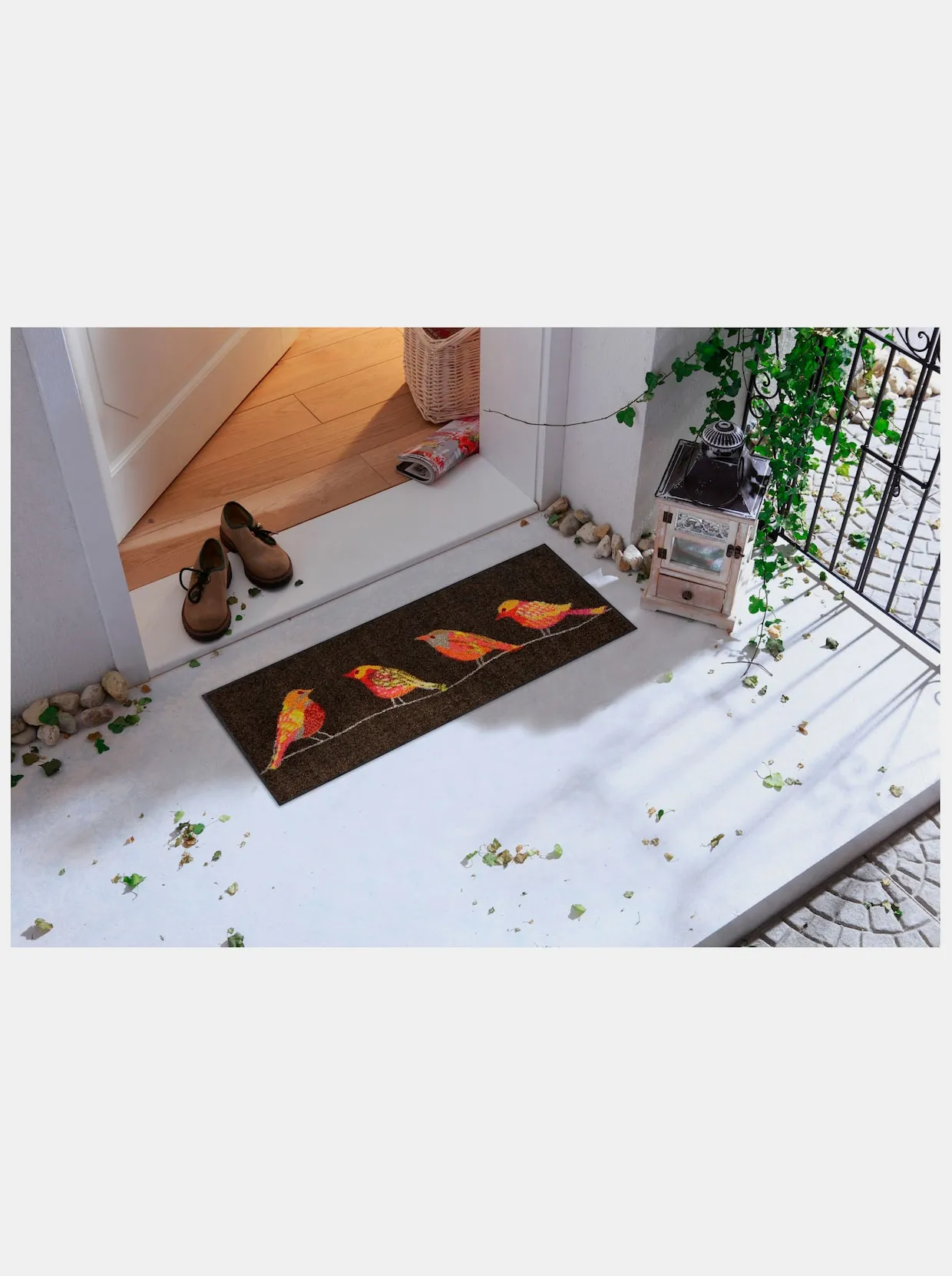 Fußmatte Mit dekorativem Vogel-Motiv. Made in Germany. Äußerst strapazierfähig und pflegeleicht. Für den Innen- und überdachten Außenbereich geeignet. Rückseite rutschhemmend beschichtet. Für Fußbodenheizung geeignet. PVC-frei. 5 Jahre Qualitätsgarantie.