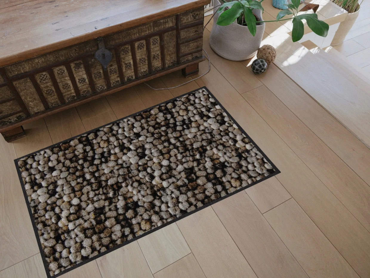 Fußmatte Made in Germany. Strapazierfähige, UV-beständige Qualität für den Innen- und überdachten Außenbereich. Rückseite rutschhemmend beschichtet. PVC-frei. Für Fußbodenheizung geeignet, 5 Jahre Qualitätsgarantie.