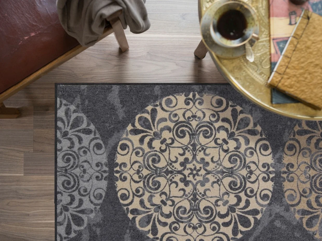 Fußmatte Made in Germany. Strapazierfähige, UV-beständige Qualität für den Innen- und überdachten Außenbereich. Rückseite rutschhemmend beschichtet. PVC-frei. Für Fußbodenheizung geeignet, 5 Jahre Qualitätsgarantie.