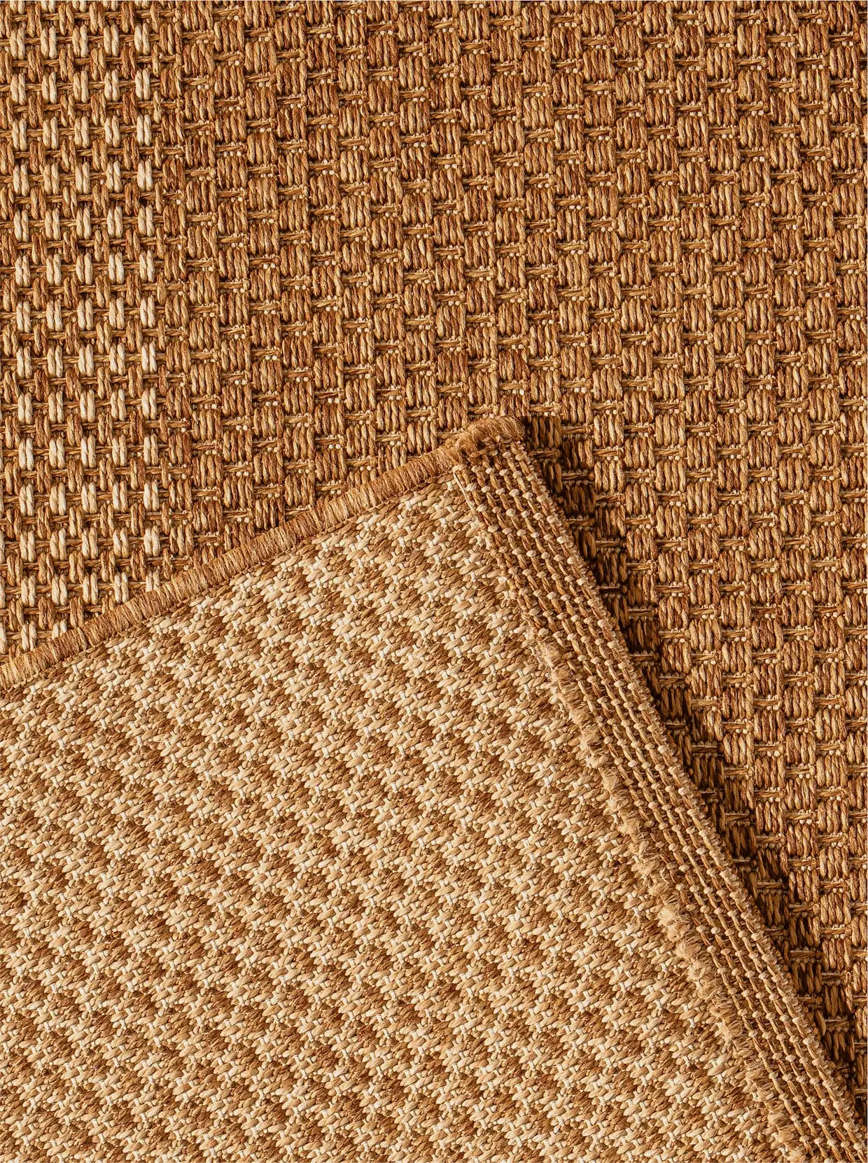 Teppich Mit aufwendigem Web-Dessin. Längsseiten gekettelt. Für den Innen- und Außenbereich. Pflegeleicht und wasserabweisend. Flachgewebe.