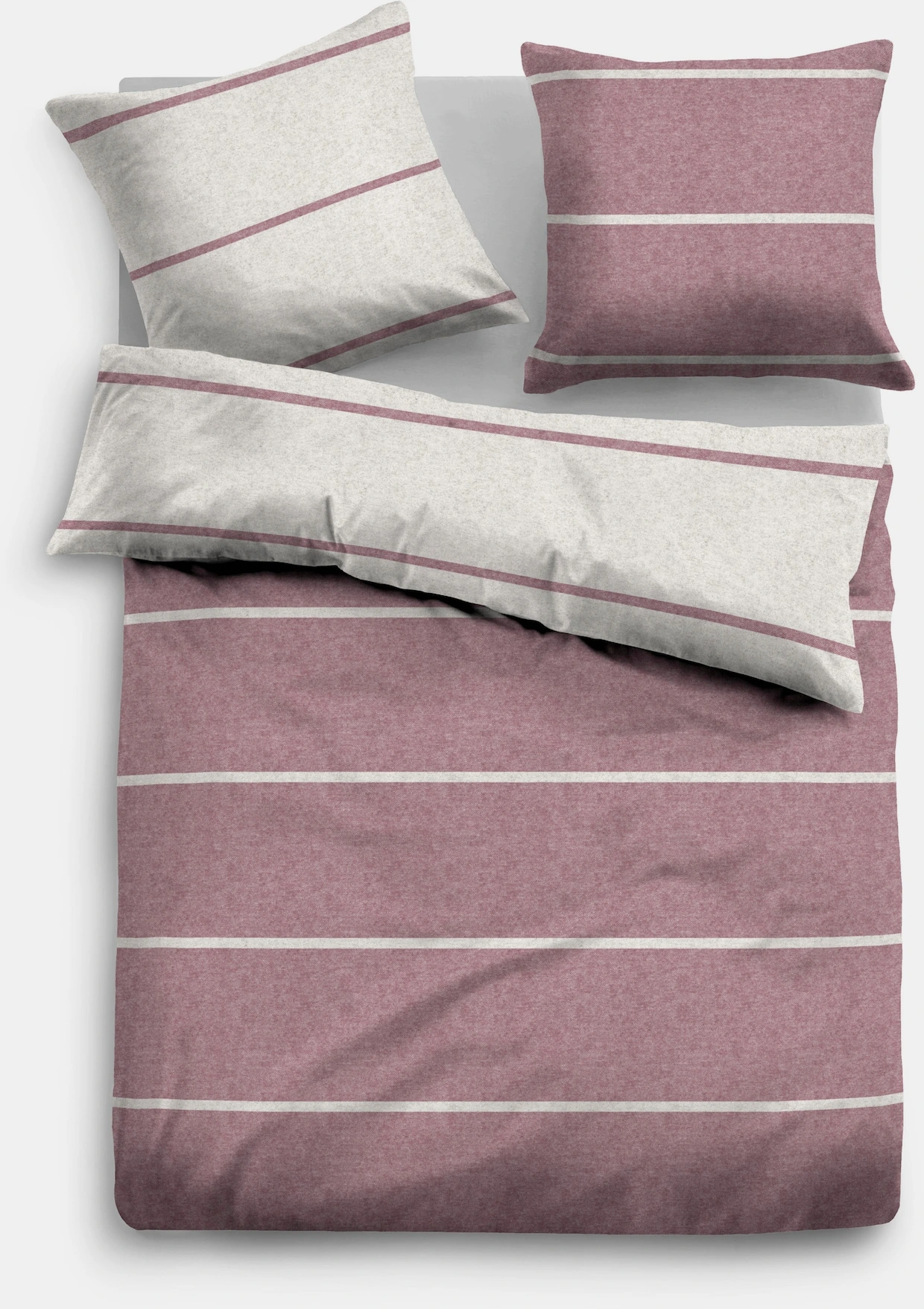 Wende-Bettwäsche von TOM TAILOR. In moderner Melange-Optik mit trendaktuellem Streifen-Dessin. Aus kuschelweichem Flanell, hautsympathisch, atmungsaktiv und herrlich wärmend. Pflegeleicht, bügelfrei und einlaufsicher dank hochwertiger Sanfor-Veredlung. Made in Germany. Alle Teile mit Reißverschluss.