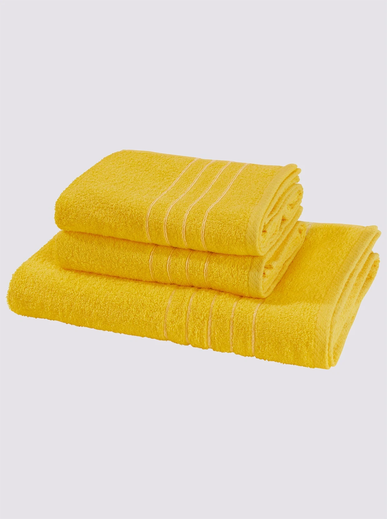 Sehr vielseitig! Handtuch-Programm in flauschiger Walkfrottier-Qualität. Mit feiner Streifen-Bordüre am Rand. Auch erhältlich als 3-tlg. Sparset, bestehend aus 2 Handtüchern und 1 Duschtuch. Luxus-Qualität.