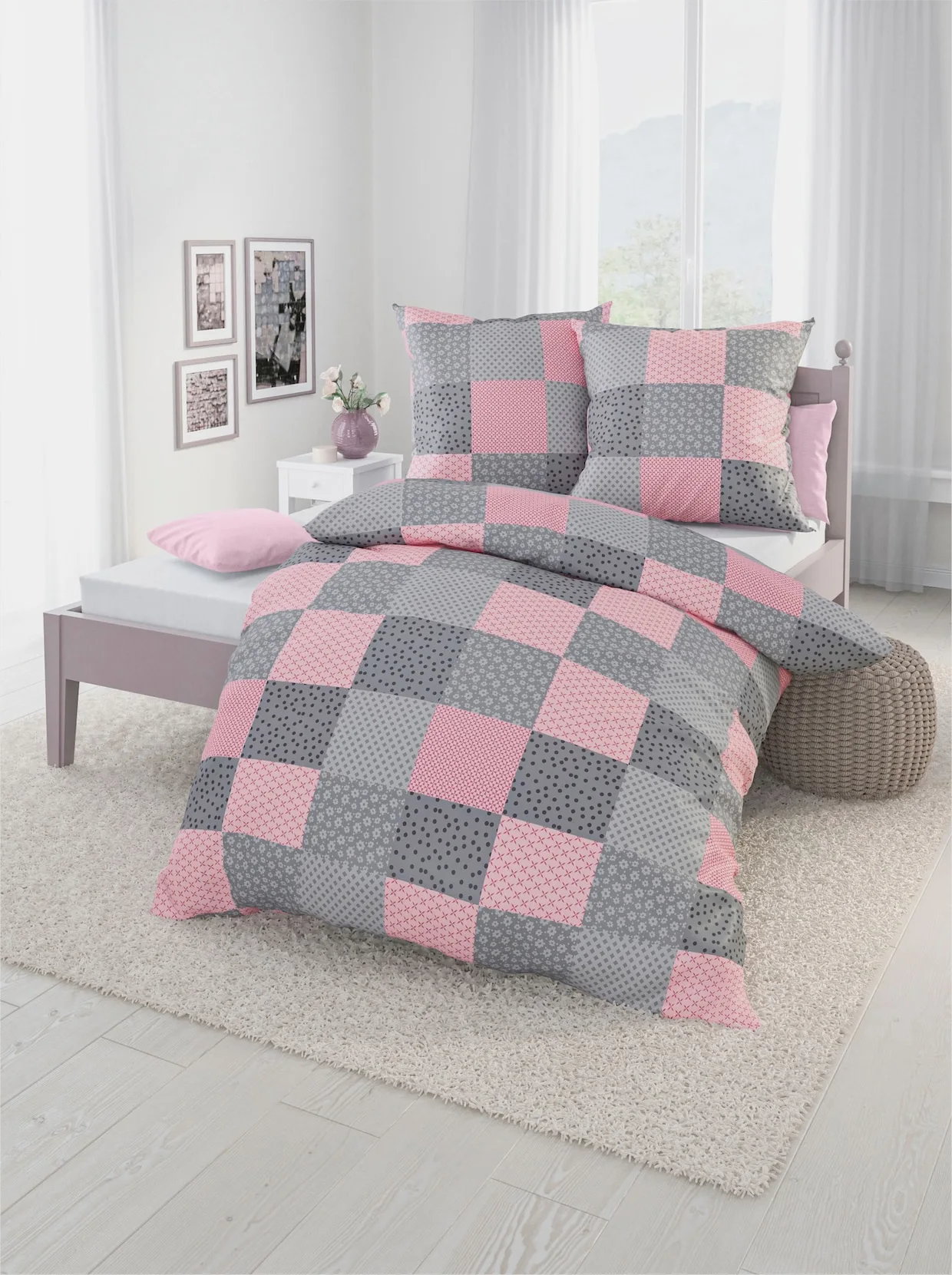 Bettwäsche Im Patchwork-Dessin. Mit Reißverschluss.