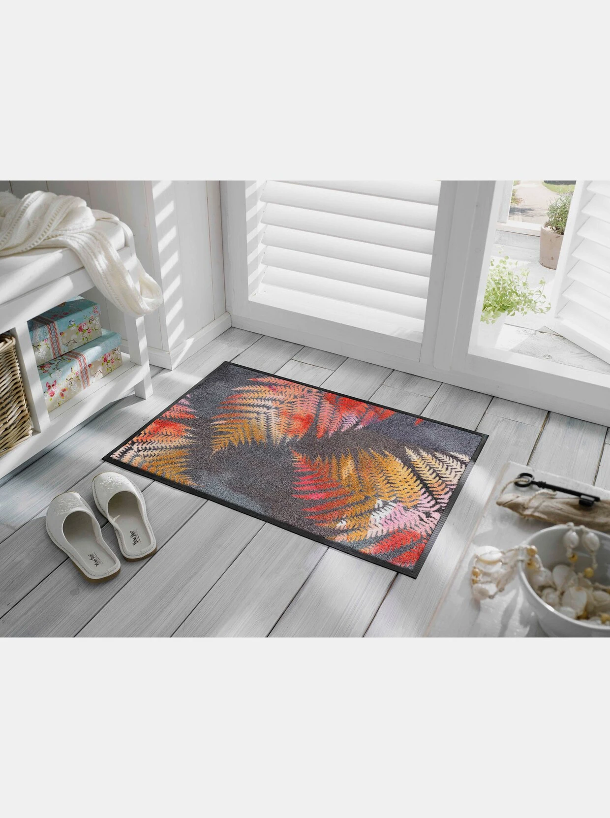 Fußmatte Sehr dekorativ mit abstraktem Blätter-Motiv. Äußerst strapazierfähig und pflegeleicht. Für den Innen- und überdachten Außenbereich. Rückseite rutschhemmend gummiert. PVC-frei. Für Fußbodenheizung geeignet, 5 Jahre Qualitätsgarantie.