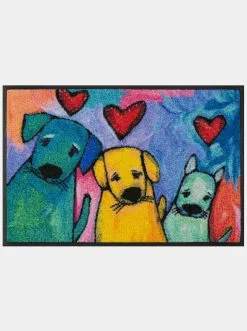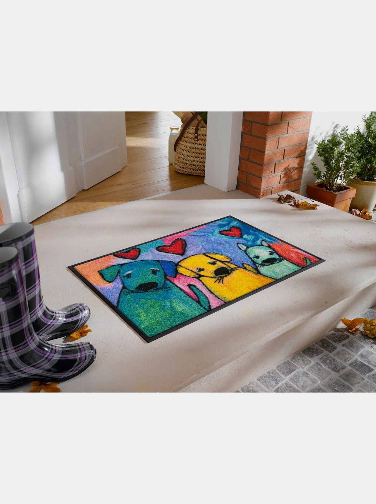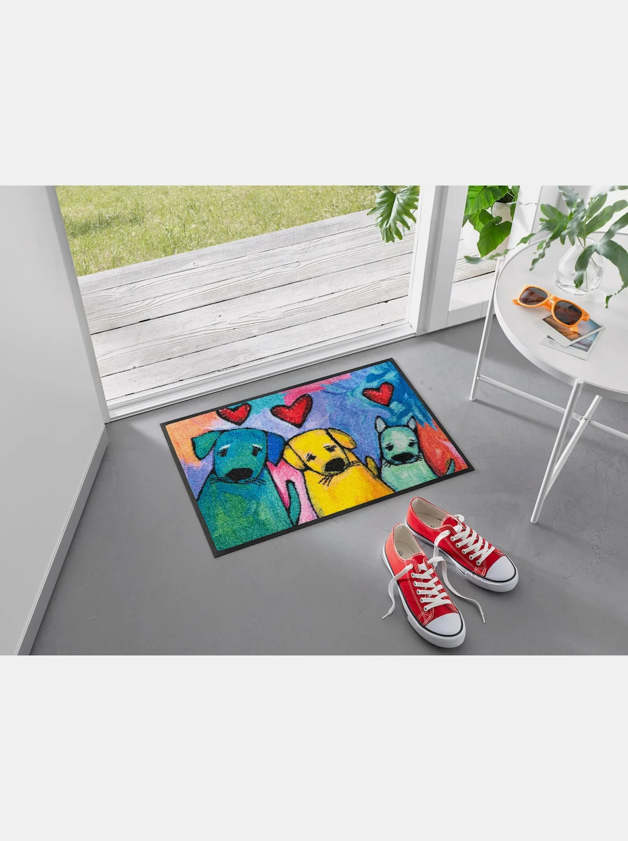 Fußmatte Mit niedlichem Hunde-Motiv. Äußerst strapazierfähig und pflegeleicht. Für den Innen- und überdachten Außenbereich. Rückseite rutschhemmend gummiert. PVC-frei. Für Fußbodenheizung geeignet, 5 Jahre Qualitätsgarantie.