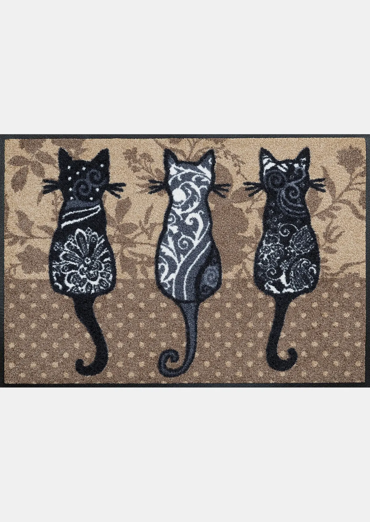 Fußmatte Mit originellem Katzen-Motiv. Äußerst strapazierfähig und pflegeleicht. Für den Innen- und überdachten Außenbereich. Rückseite rutschhemmend gummiert. PVC-frei. Für Fußbodenheizung geeignet, 5 Jahre Qualitätsgarantie.