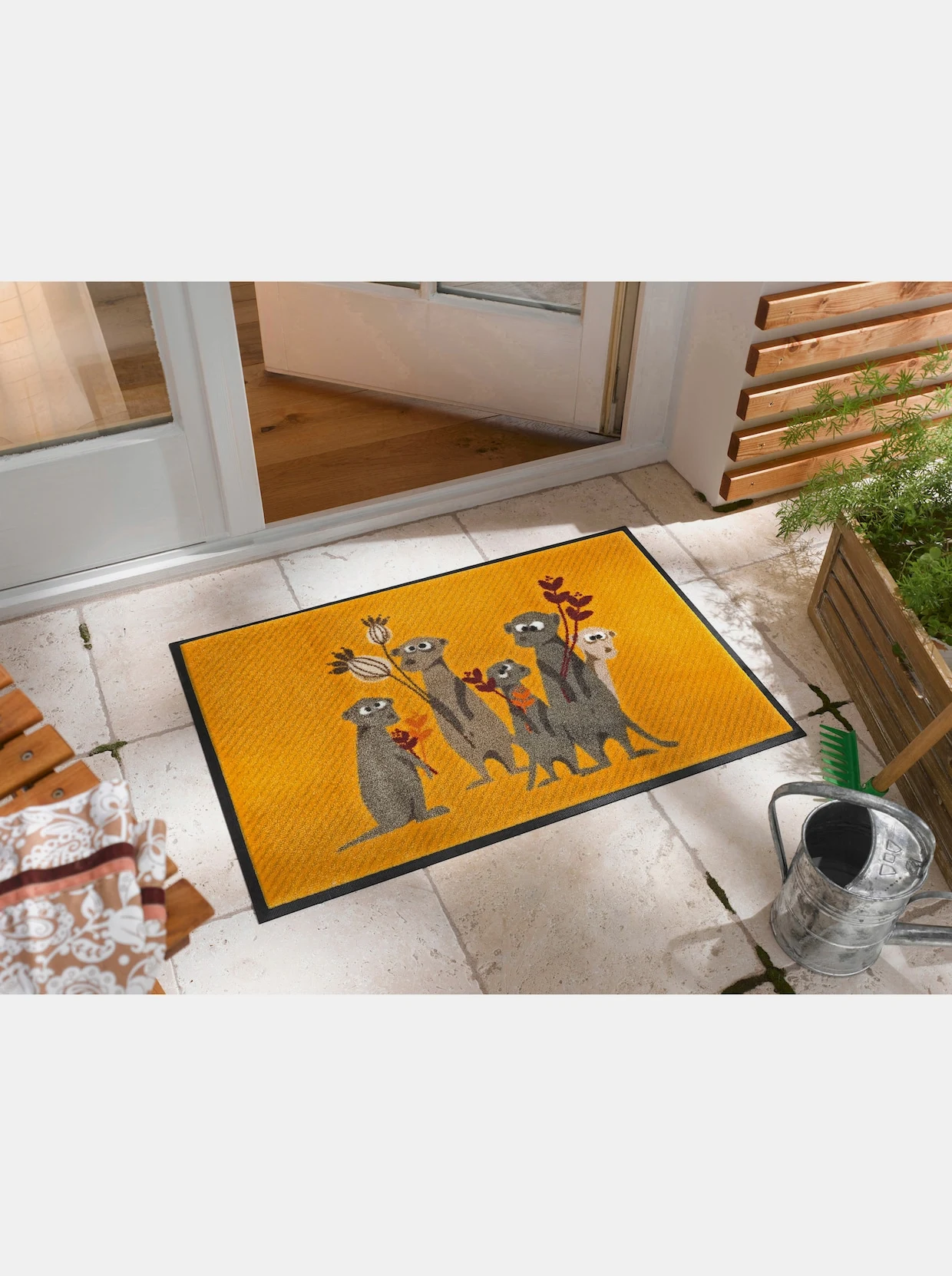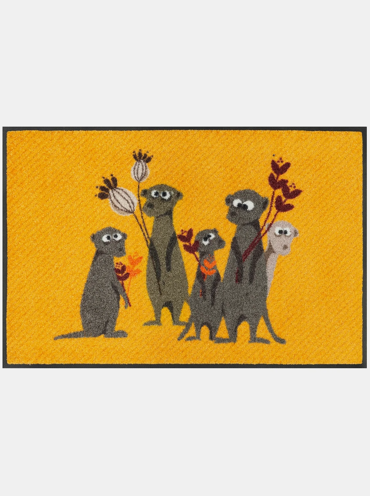 Fußmatte Mit fröhlichem Erdmännchen-Motiv. Äußerst strapazierfähig und pflegeleicht. Für den Innen- und überdachten Außenbereich. Rückseite rutschhemmend gummiert. PVC-frei. Für Fußbodenheizung geeignet, 5 Jahre Qualitätsgarantie.