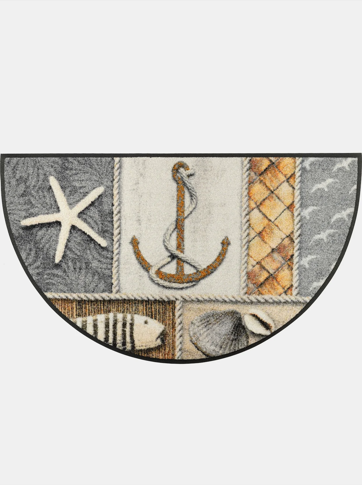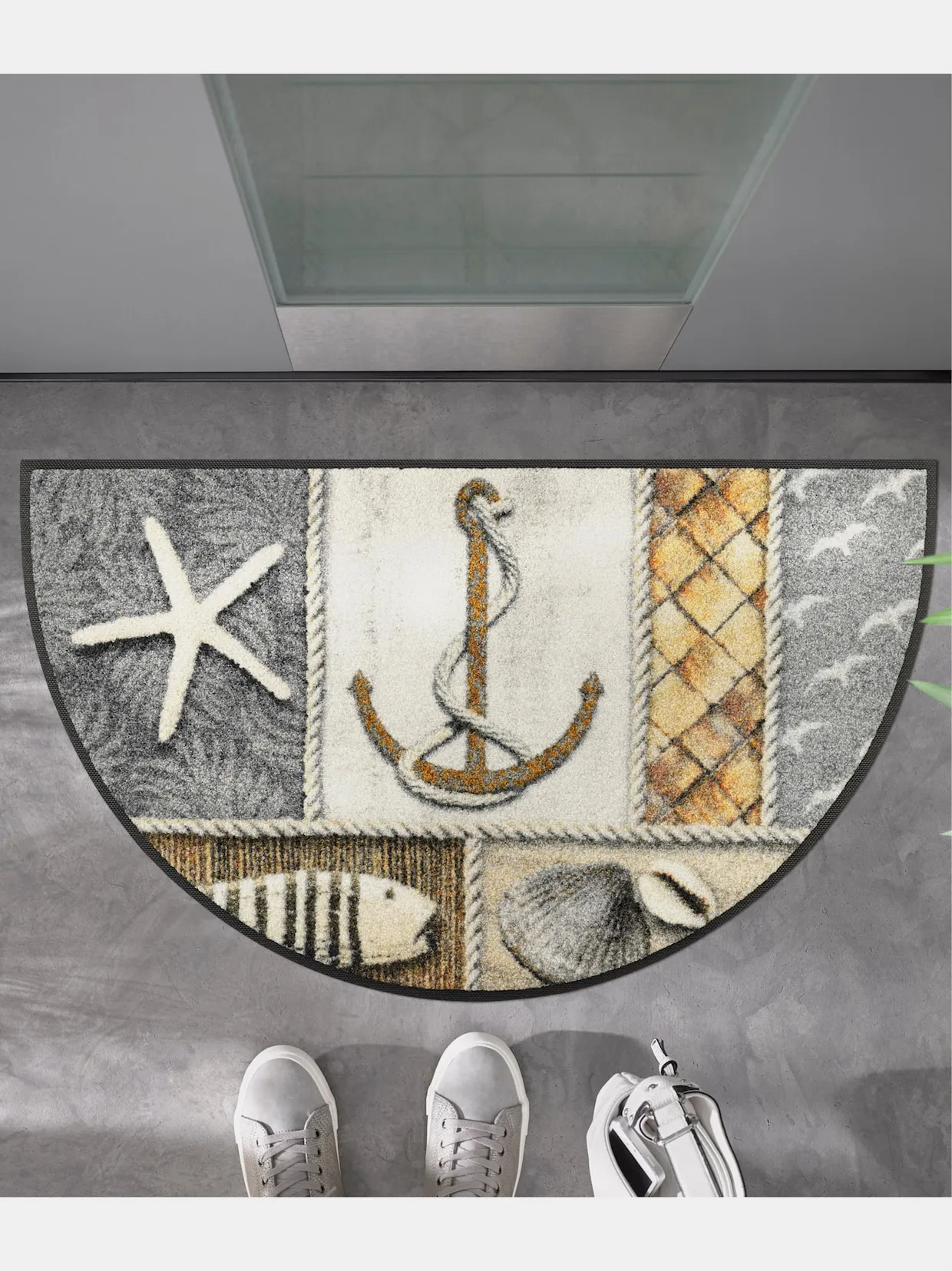 Fußmatte Mit maritimen Motiven. Äußerst strapazierfähig und pflegeleicht. Für den Innen- und überdachten Außenbereich. Rückseite rutschhemmend gummiert. PVC-frei. Für Fußbodenheizung geeignet, 5 Jahre Qualitätsgarantie.