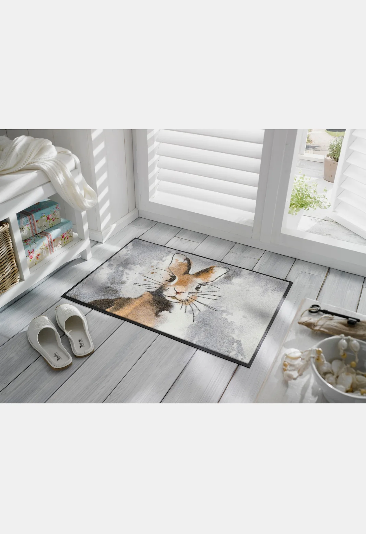 Fußmatte Mit dekorativem Hasen-Motiv. Äußerst strapazierfähig und pflegeleicht. Für den Innen- und überdachten Außenbereich. Rückseite rutschhemmend gummiert. PVC-frei. Für Fußbodenheizung geeignet, 5 Jahre Qualitätsgarantie.