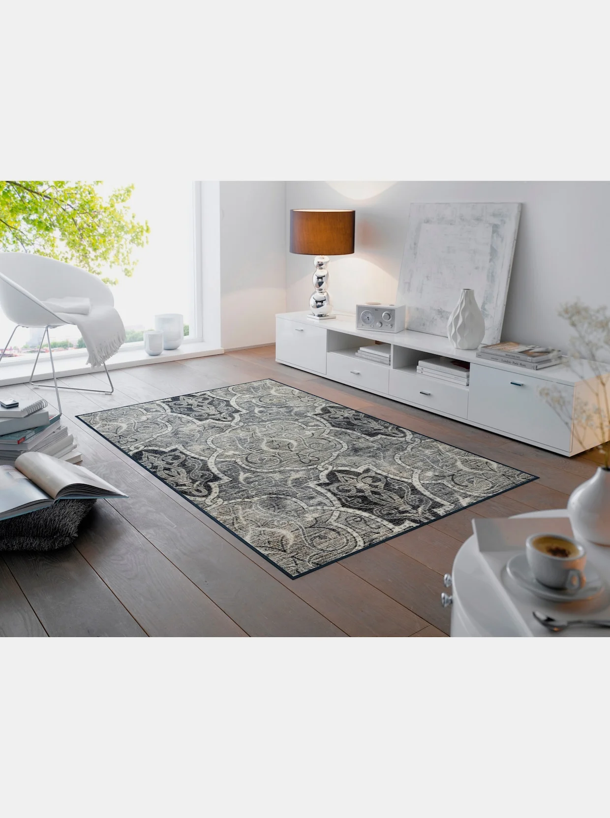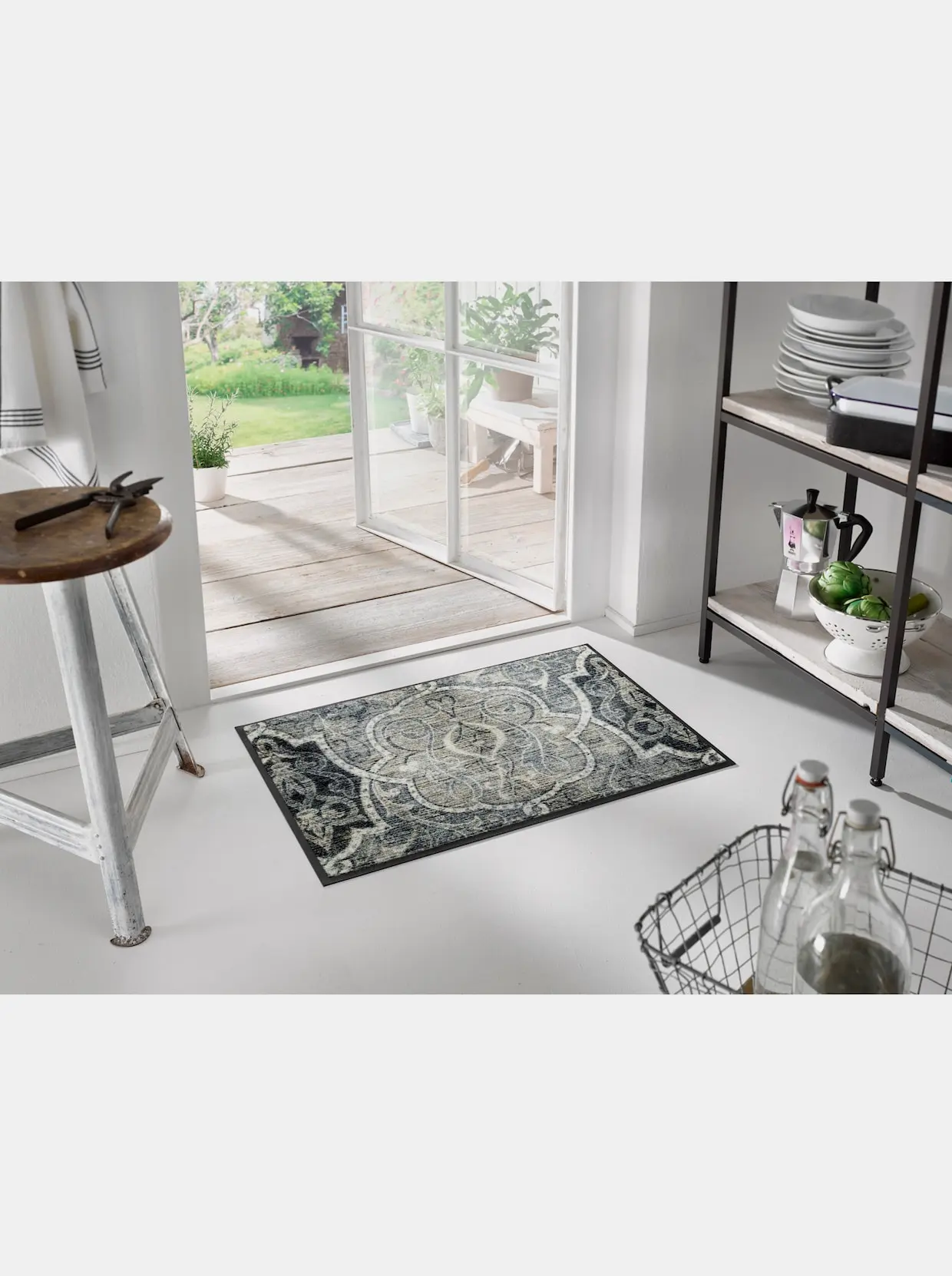 Fußmatte Mit edlen Ornamenten. Äußerst strapazierfähig und pflegeleicht. Für den Innen- und überdachten Außenbereich. Rückseite rutschhemmend gummiert. PVC-frei. Für Fußbodenheizung geeignet, 5 Jahre Qualitätsgarantie.
