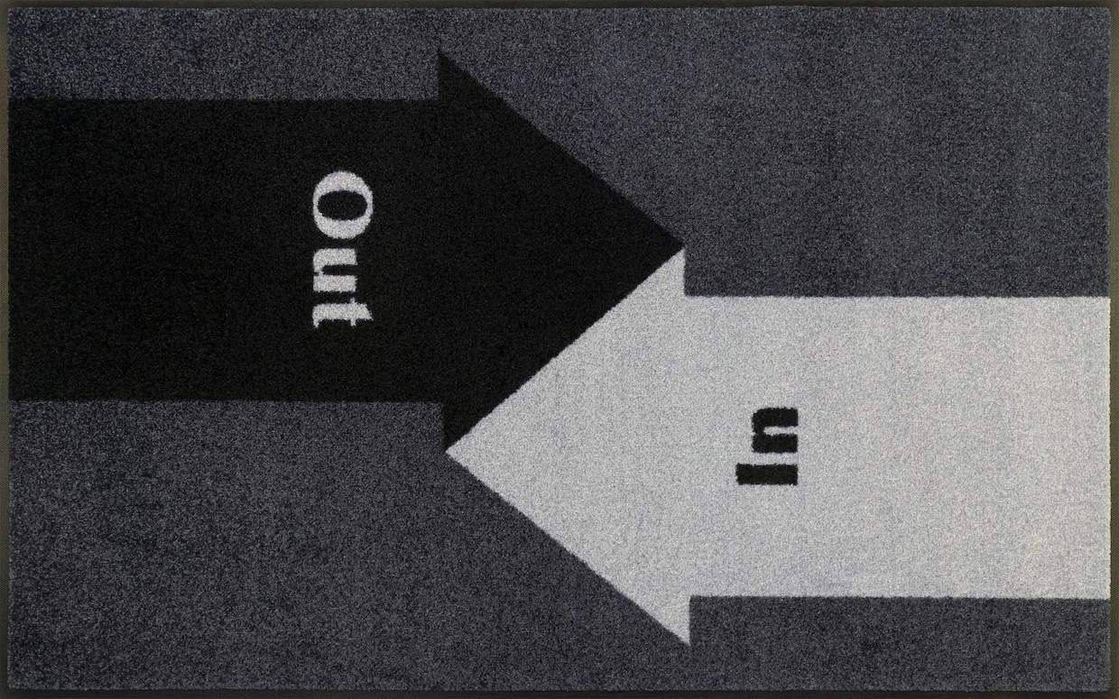 Fußmatte Originell mit In- und Out-Motiv. Äußerst strapazierfähig und pflegeleicht. Für den Innen- und überdachten Außenbereich geeignet. Rückseite rutschhemmend beschichtet. Für Fußbodenheizung geeignet. PVC-frei. 5 Jahre Qualitätsgarantie.