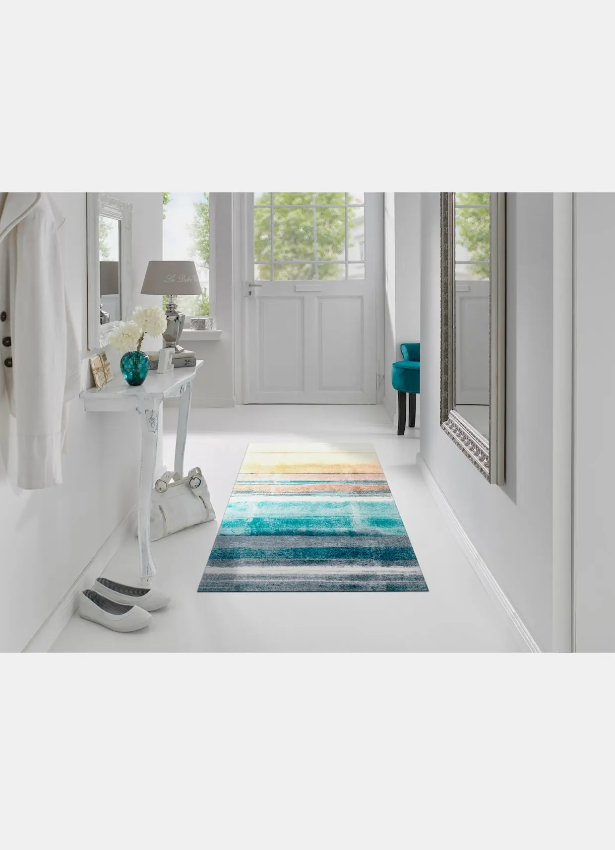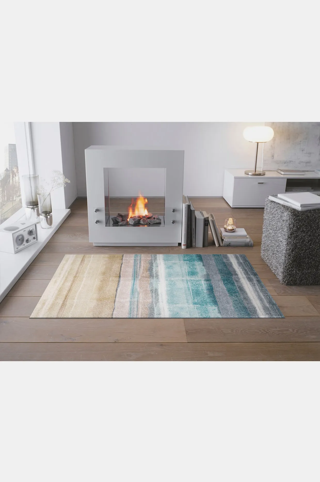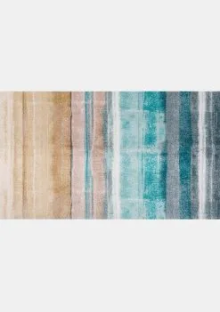 Fußmatte Sehr dekorativ mit abstraktem Strand-Dessin. Äußerst strapazierfähig, für den Innen- und überdachten Außenbereich. Rückseite rutschhemmend gummiert. Ohne Gummirand. PVC-frei. Für Fußbodenheizung geeignet. 5 Jahre Qualitätsgarantie.